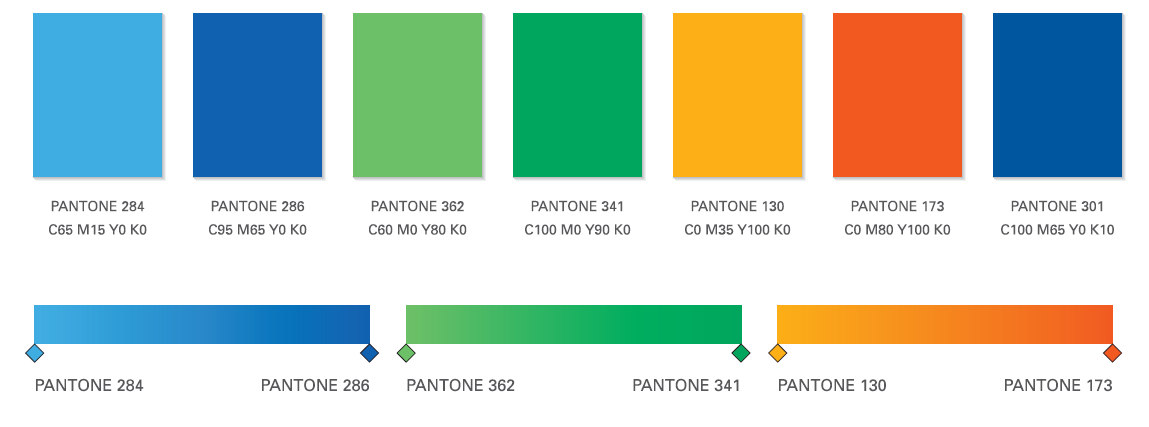 파란색은 해양(성장·희망), 주황색은 도시(열정·창조), 녹색은 자연(생명·균형)을 상징.